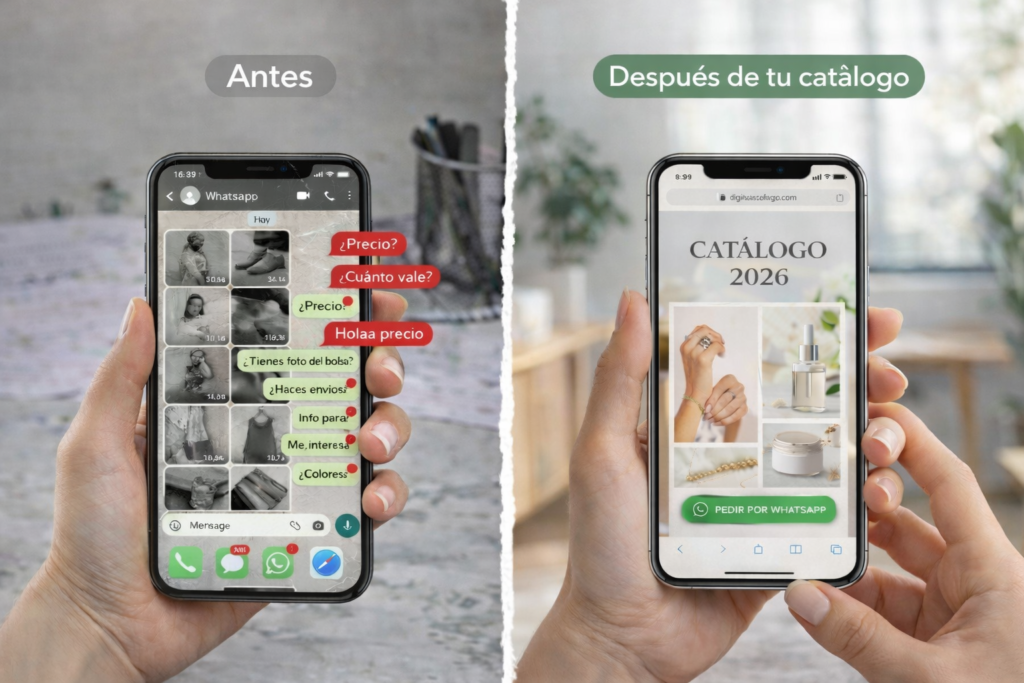 Tu PDF interactivo listo para enviar. Hasta 12 productos/servicios y botón ‘Pedir por WhatsApp’ en cada ítem